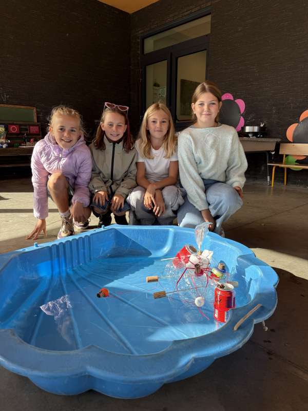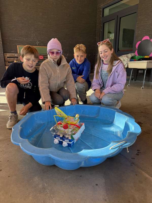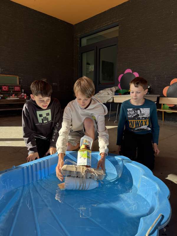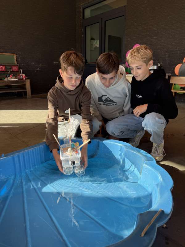 Als afsluiter van dit thema bouwden onze leerlingen hun eigen boot en brachten deze te water. Niet iedere boot doorstond de vaartest, maar we zagen wel heel leuke ontwerpen. Een fijne les waar onze zesdeklassers hun technisch talent konden tonen.